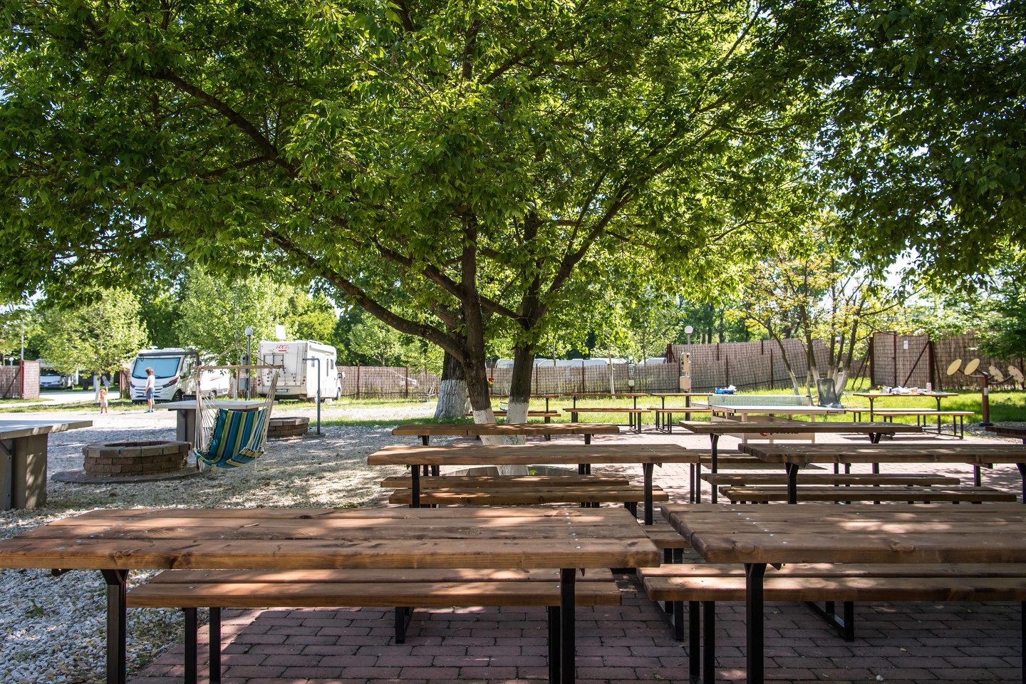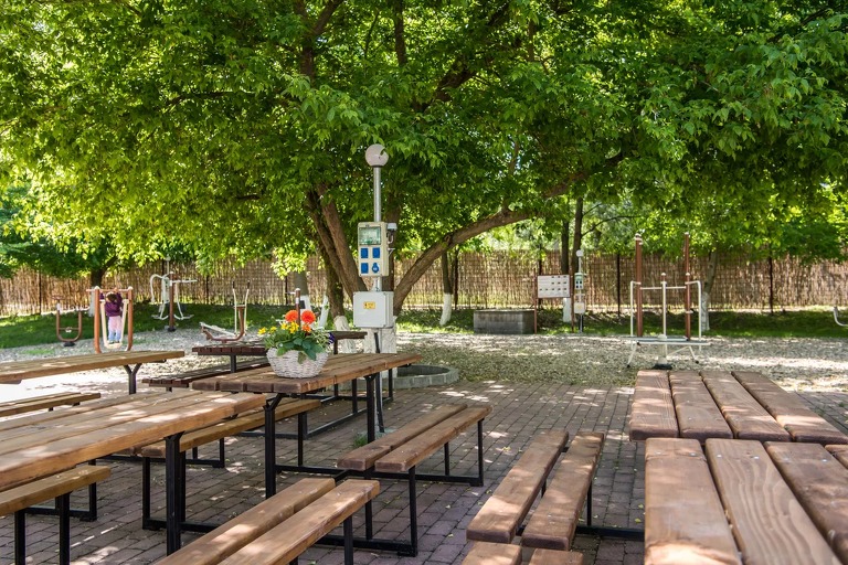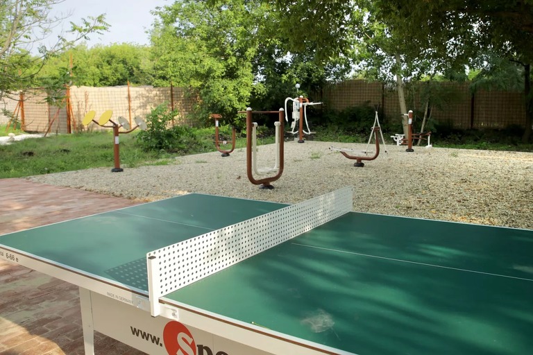 A területen egy modern, klassz fitneszpark és pingpong asztalok szolgálják a vendégek aktív kikapcsolódását.