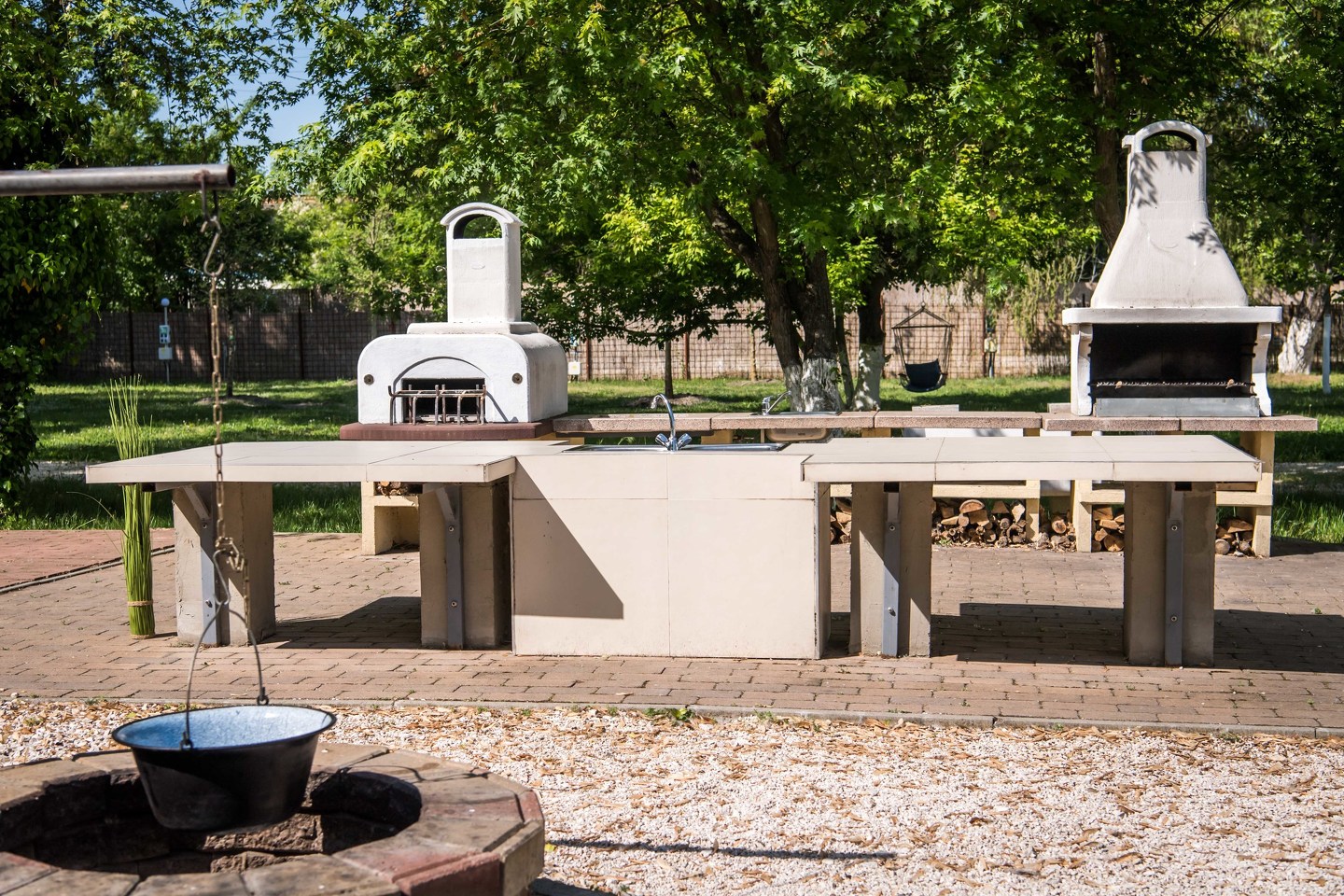 Összesen 4 kerti bográcsozóhely, egy grillezőhely és egy pizzasütő kemence áll a vendégek rendelkezésére. Ezért lehetőségünk van nagyobb létszámú csoport fogadására is, akik akár főzőverseny keretében is összemérhetik a tudásukat.