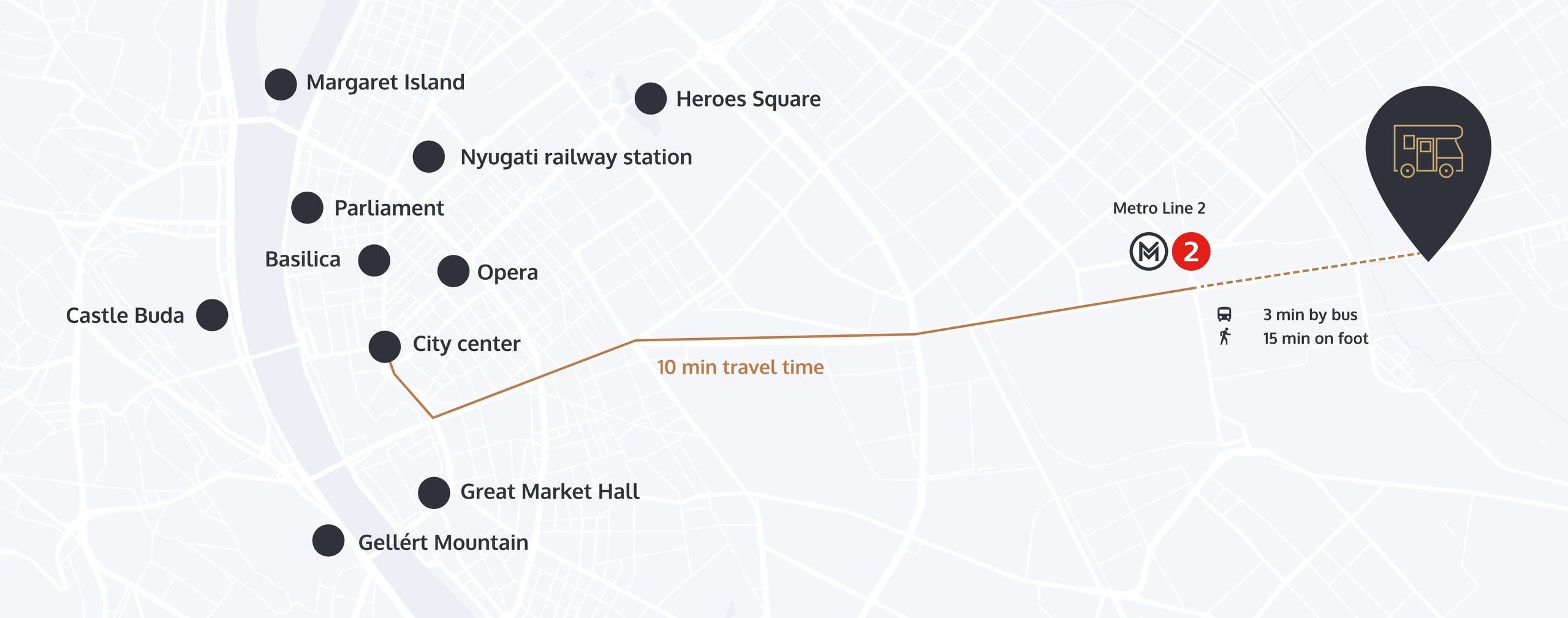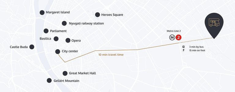 Az Örs vezér tere és a rendezvényhelyszín között a távolság 1,5 km.